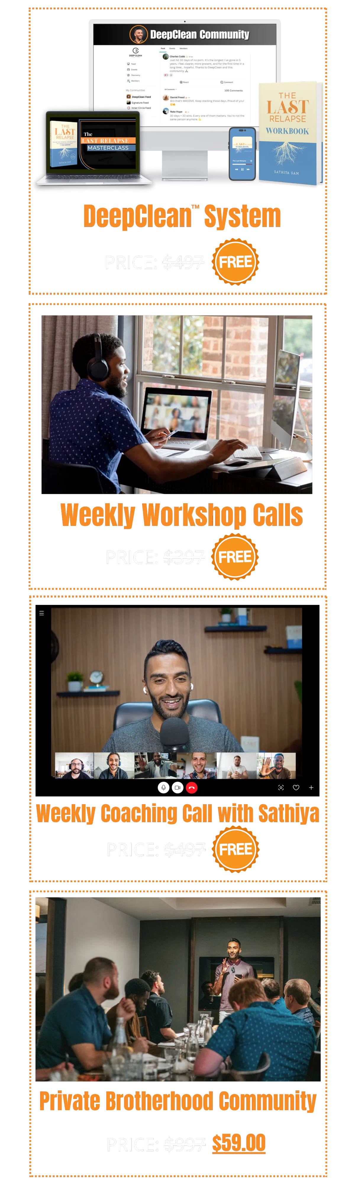 You’re getting full access to DeepClean™ Inner Circle – our private member portal where you'll find a step-by-step system that’s already helped over 1,000 men quit porn for good. You are getting a full video course you can watch on your own pace. You are getting weekly live coaching calls (or replays if you miss them). You are getting direct access to our coaching team, daily accountability and support in our private chat, and a faith-based, science-informed path to lasting freedom.